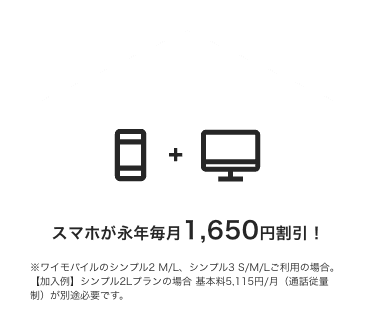 NURO光でんわとセットで利用することで、家族で使用しているソフトバンクまたはワイモバイルのスマートフォン、3Gケータイ、またはipadのご利用料金から毎月最大1,650円割引となるサービスです。※適用には、NURO光でんわが開通後にNURO光とソフトバンクショップの2社にお申し込み手続きが必要です。手続き完了次第割引開始となります。